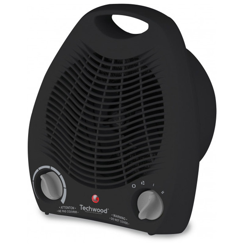 Chauffage Soufflant TECHWOOD - Puissance: 1700-2000Watts - Sélecteur 4 positions: 0 / Ventilateur / 1000W / 2000W - Thermostat ajustable - Protection thermique - Arrêt automatique au basculement - Fusible de sécurité - Témoin lumineux de chauffe - Poignée de transport - Alimentation: 230V~ 50Hz - Couleur: Noir - Garantie: 1an