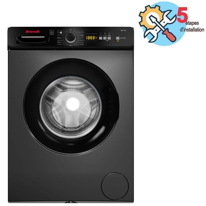 Lave Linge Frontal BRANDT - Capacité de lavage: 7 Kg - Vitesse d'essorage: 1400 tr/min - Classe Énergétique: A+++ - 15 Programmes - Départ différé - Rinçage - Température d’eau : Froide, Chaude, Tiède - Avec Afficheur - Lavage rapide - Dimensions: H x L x P: 85 × 60 × 60 cm - Couleur: Silver - Garantie: 2 ans