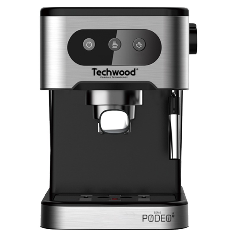 Machine à Café Expresso TECHWOOD - Puissance: 1350 watts - Capacité: 1.5 Litres - Pression de la pompe: 20 bars - Porte filtre (café moulu ou capsules) - Plateau chauffe tasses - Bac d'égouttement amovible - Arrêt automatique après 25 minutes - Réservoir translucide - Buse vapeur: Préparer de délicieux cappuccinos, Chauffer le lait et obtenir une mousse crémeuse, Produire de l'eau chaude ou pour le thé - Alimentation: 220-240V~ 50/60Hz - Couleur: Noir - Garantie: 1an