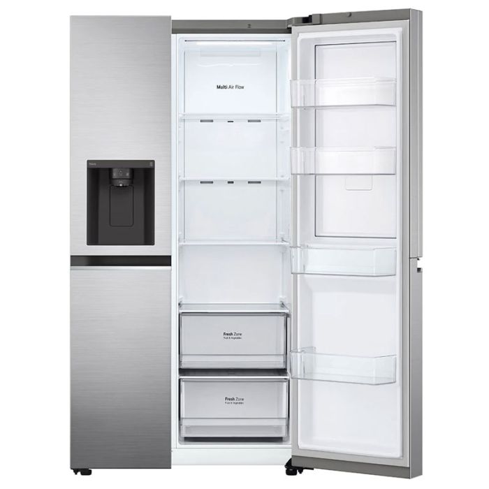 Réfrigérateur Side By Side LG - 2 ports - Système de refroidissement: NoFrost - Capacité Brut: 674 Litres - Capacité Net: 617 Litres - Classe énergétique: A+++ - Door Cooling+™ - UVnano™ - Smart Diagnosis™ - Smart Inverter Compressor - Multi-Air Flow - Machine à glaçons - Dimensions: H x L x P: 179 x 91.3 x 73.5 cm - Couleur: Argent platine - Garantie: 3 ans (10 ans sur moteur)