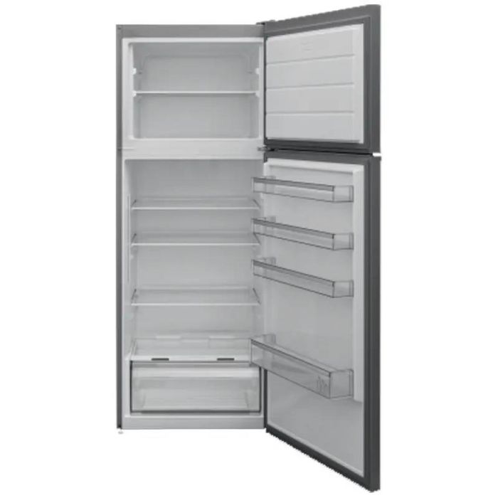 Réfrigérateur TELEFUNKEN - 2 Portes - Système de Refroidissement: Less Frost - Volume: 439 litres - Volume Net: 437 litres - Classe énergétique: A+ - Éclairage: LED - Bac à glaçons - Porte-oeufs - Portes réversibles - Refroidissement par air-ventilateur turbo - Pieds de nivellement - Roues arrière - Dimensions HxLxP: 183 x 70 x 65 cm - Couleur: Inox - Garantie: 3 ans