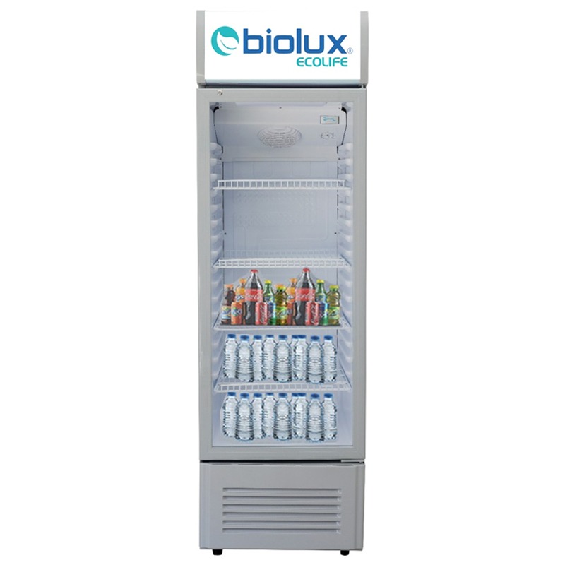 Réfrigérateur Vitrine BIOLUX - Volume Total: 168 Litres - Éclairage LED - Une porte vitrée transparente - Température réglable pour une conservation parfaite - Système de refroidissement puissant - Grande capacité de stockage - Offre une excellente visibilité des produits - Pratique et fonctionnel - Preserve L’environnement - Dimensions: L x P x H: 53.5 x 52.5 x 1.57 cm - Couleur: Gris - Garantie: 1an