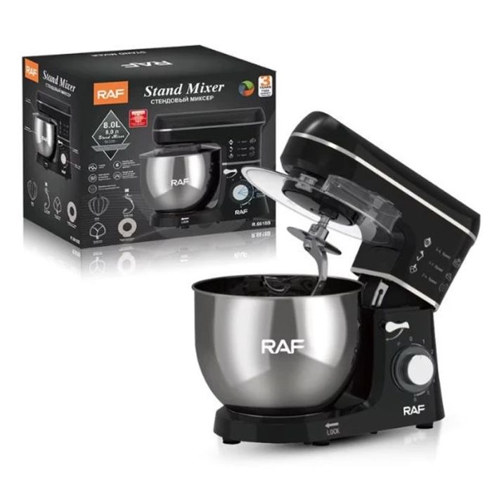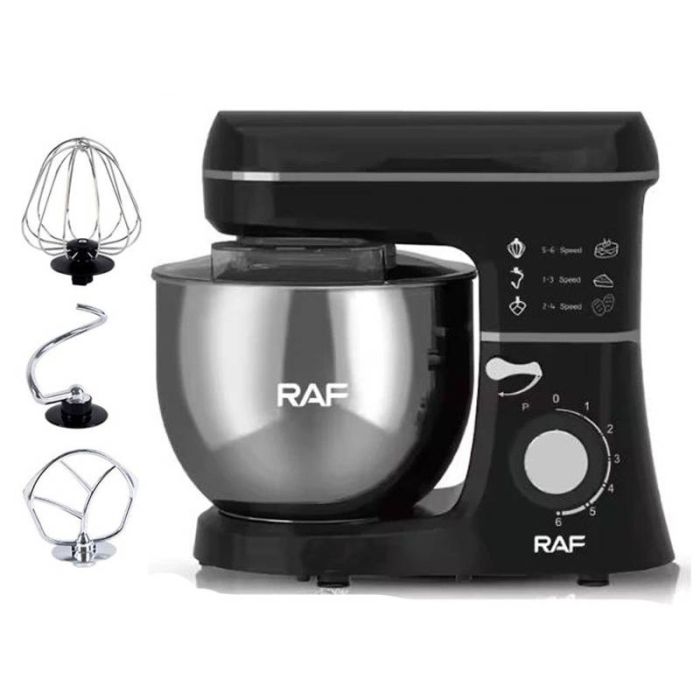 Robot Pétrin RAF - Vitesse: 6 Vitesses - Puissance: 1400 Watts - Capacité du bol: 8 Litres - Mouvement planétaire pour un mélange parfait - Pieds antidérapants - Protection contre la surchauffe - Facile à nettoyer et à ranger - Comprend: 1x Pétrin à pâte électrique, 3x Titre, 1x Bol en acier - Longueur du câble: 2 m - Design Moderne et Intuitive - Format compact idéal pour les petites cuisines - Couleur: Noir - Garantie: 1 an