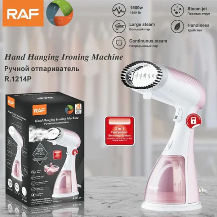 Défroisseur à main RAF - Puissance: 1500 Watts - Capacité du réservoir d'eau: 300 ml - Arrêt automatique - Brosse amovible pour tissus épais - Facile à utiliser - Couleur: Rose