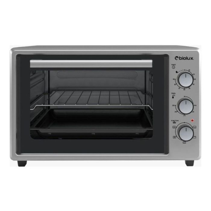 Four Électrique BIOLUX - Volume: 35 Litres - Puissance: 1400 Watts - Température: Réglable de 250° - Minuterie: 90 minutes - Chaleur tournante - 3 modes de fonctionnement haut, bas et combiné - Arrêt automatique - Alimentation 220-240 / 50-60 Hz - Témoin lumineux Marche/Arrêt - Dimensions: 41.6 x 50.5 x 29.8 cm - Couleur: Silver - Garantie: 1an