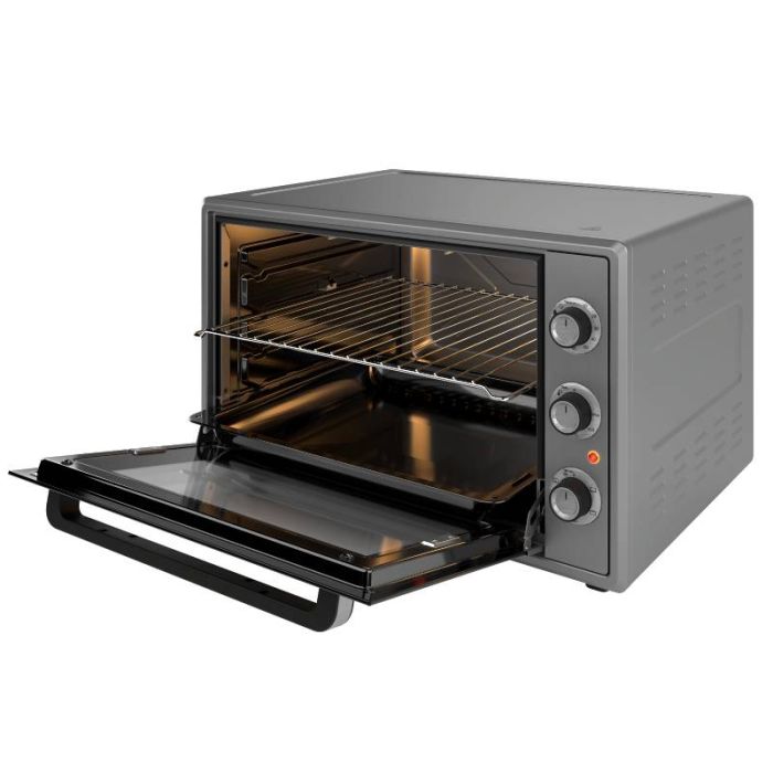 Four Électrique BIOLUX - Volume: 60 Litres - Température: Réglable de 250° - Minuterie: 90 minutes - Chaleur tournante - 3 modes de fonctionnement: haut, bas et combiné - Alimentation 220-240 / 50-60 Hz - Témoin lumineux Marche/Arrêt - Arrêt automatique - Signal de fin de fonctionnement - Grill - Plateau carré - Couleur: Silver - Garantie: 1an