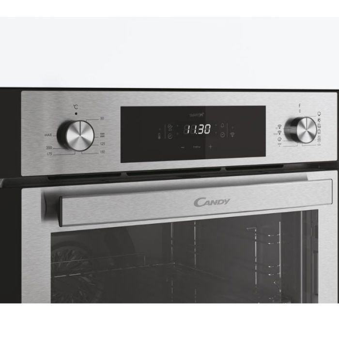 Four Encastrable Électrique CANDY - Volume: 70 Litres - Classe Énergétique: A+ - Nombre de Fonction: 10 fonctions - Chaleur pulsée - Connectivité: Wi-Fi - Contrôle à distance - Matériau de la porte: Inox et verre - Système de nettoyage intégré: Aquativa - Plateau: 1x35mm - Dimensions: L x P x H: 595 x 595 x 568 mm - Couleur: Inox - Garantie: 1an