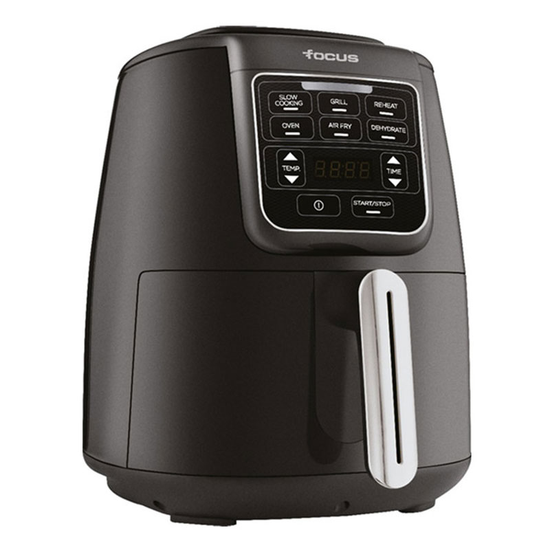 Friteuse Sans Huile FOCUS et Grill - Puissance: 1550 watts - Capacité: 4 Litres - Température: Réglable de 60°C jusqu'à 210°C - Pieds antidérapants - Protection contre la surchauffe - Affichage LED - Panier à friture amovible - Poignée Inox - Couleur: Noir et Silver - Garantie: 1an