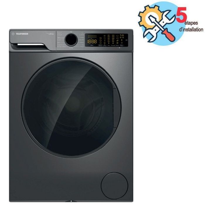 Lave Linge Frontal TELEFUNKEN - Capacité de lavage: 10 Kg - Vitesse d'essorage: 1400 tr/min - Classe Énergétique: A+++ - Nombre de programme: 15 Programmes - Direct Drive - Avec Afficheur - Design élégant - Plus durable et plus hygiénique - Lavage rapide - Dimensions: H x L x P: 845 x 597 x 582 mm - Couleur: Dark Gris - Garantie: 1 an