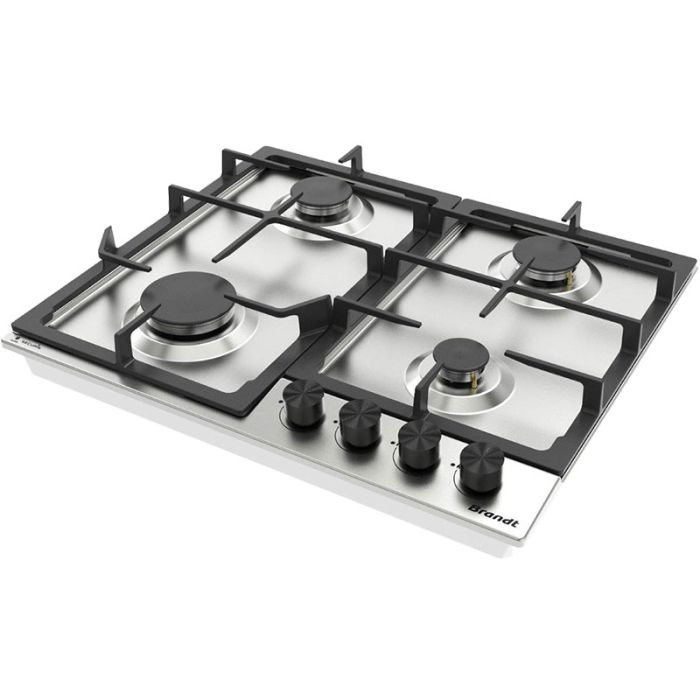 Plaque de Cuisson Encastrable BRANDT - Type de Plaque: à Gaz - Largeur: 60 cm - Nombre de Feux: 4 Feux - Puissance maximum du gaz: 7,5KW - Grille fonte - Sécurité Gaz par thermocouple - Commande frontale - Système d'allumage intégré une main - Adapte à tous les styles de cuisson - Couleur: Inox - Garantie: 1 an