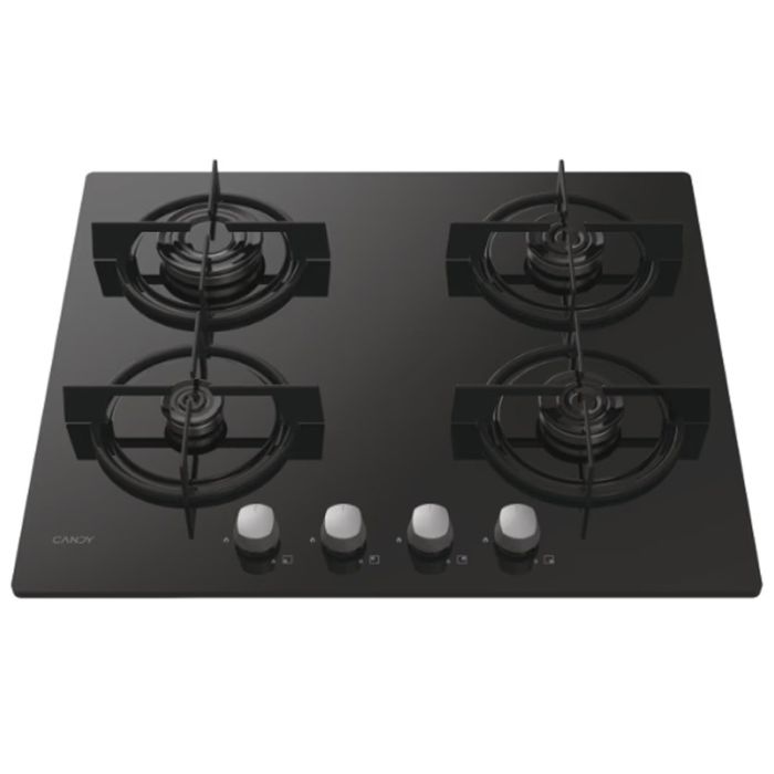 Plaque de Cuisson Encastrable CANDY - Type de Table: à Gaz - Largeur: 60 cm - Nombre de Foyers: 4 Foyers - Puissance du 1er élément chauffant: 1000 Watts - Puissance du 2ème élément chauffant: 2700 Watts - Puissance du 3ème élément chauffant: 1750 Watts - Puissance du 4ème élément chauffant: 1750 Watts - Grilles en fonte - Commande Frontale - Matière: Verre trempé - Dimensions: H x L x P: 47,4 x 595 x 510 mm - Couleur: Noir - Garantie: 2 ans